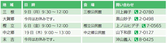 くらし 2月老人クラブ活動 21/38 前の記事 次の記事 発行日 : 2026年02月01日 自治体名 : 東京都八丈町 広報紙名 : 広報はちじょう 2026年2月号 下記の日程で各地域老人クラブは定例会を開催します。 ※町内在住のおおむね60歳以上の方が対象です。 そのほか、老人クラブごとに様々な活動を行っています。興味のある方はご連絡ください。 Tweet シェアする 国民年金 図書館からのお知らせ