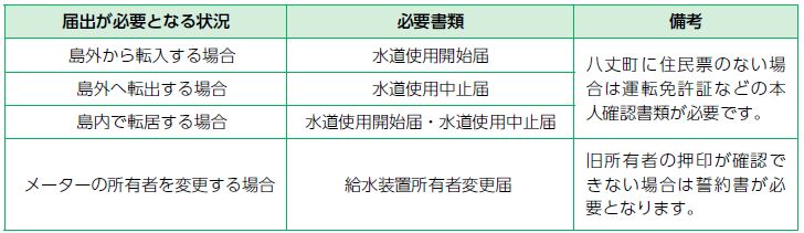 八丈町から転居される際や、メーターの所有者を変更する場合には水道の届出が必要です。