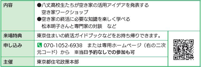イベント 島しょ空き家サミット 3/52 前の記事 次の記事 発行日 : 2025年10月01日 自治体名 : 東京都八丈町 広報紙名 : 広報はちじょう 2025年10月号 日時:11月15日(土)10:00~16:00 会場:八丈町多目的ホール「おじゃれ」 参加無料 お持ちの空き家を、「持つ」から「使う」へ動かしましょう! Tweet シェアする 令和7年八丈町防災訓練 10月5日(日) 八盛隊が聞く!第7回