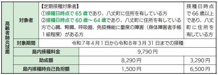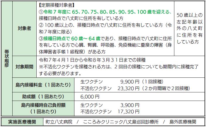 ※高齢者肺炎球菌、帯状疱疹ともに、島外にて接種した場合、接種料金と補助額のいずれか低いほうの金額を補助します。