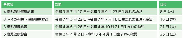 ※健診の対象者には個別通知します。受付時間は通知書をご確認ください。