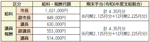 ◆特別職の給与と報酬(令和7年4月1日現在)