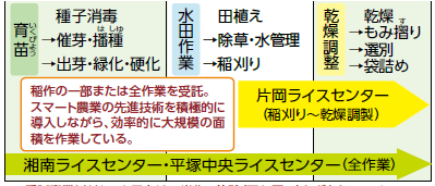 豊かな田園風景が広がる平塚市。稲作面積と収穫量は県内1位を誇る。食糧生産の場としてはもちろん、防災やさまざまな生物のすみかとしての役割など、大切な機能を備えている水田。これを維持して守っていくために、水稲を担う現場では、多くの課題と向き合っている。市農水産課の伊澤聡(いざわさとし)主査は「稲作に限りませんが、担い手の高齢化や後継者不足などの理由から、自分で作業するのが困難になる農家が増えています」と説明する。そうした影響で増えたのが、作業を外部に委託する農家だった。「担い手の確保が急務です。今後、平塚市の水田を守っていくためには、継続的に大規模な面積の水稲生産を受託できる組織の存在が重要になっています」と続ける。