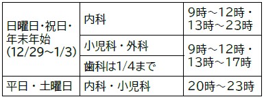 ※内科・小児科・外科の受付は各時間帯とも診療終了の30分前まで