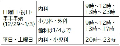 ※内科・小児科・外科の受付は各時間帯とも診療終了の30分前まで