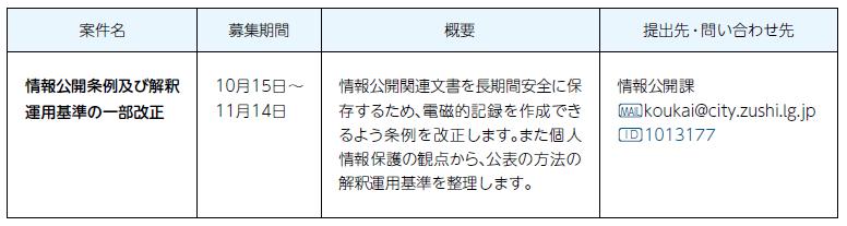 提出方法:案件名・住所・氏名・意見を、ファクス・Eメール・郵送などで、または提出先窓口へ。