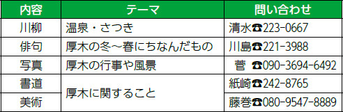 申込み:1月9日までに各代表者へ。詳細は問い合わせてください。