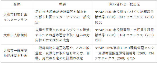 ※寄せられた意見の概要とそれに対する市の考え方は、市のホームページなどで公表する予定です。