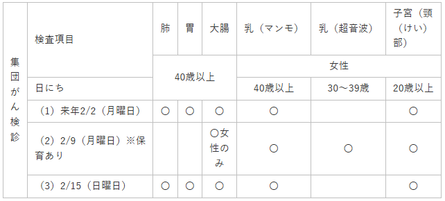 定員:各検査項目定員あり(定員を超えた場合は抽選)