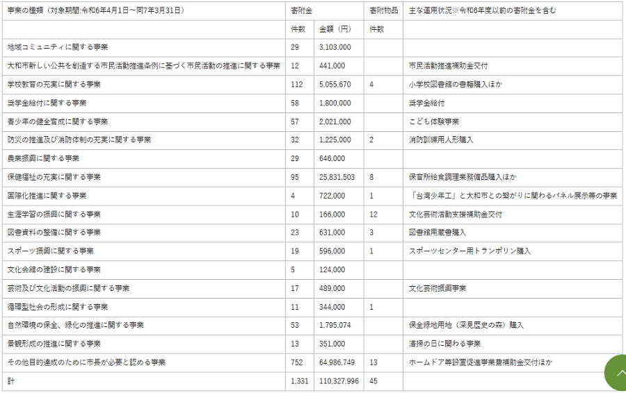 市へ寄せられた令和6年度の寄附の状況をお知らせします。