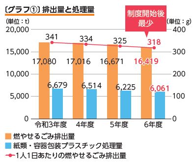 家庭系ごみの「一部有料化」と「戸別収集」制度の開始から6年が経過しました。令和6年度の燃やせるごみの排出量と収支状況をお知らせします。