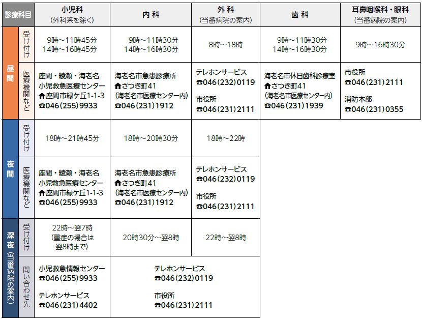 12月29日(月)~令和8年1月3日(土)の急患診療は下表のとおりです。外科・耳鼻咽喉科・眼科の診療時間などは各当番病院へお問い合わせください。