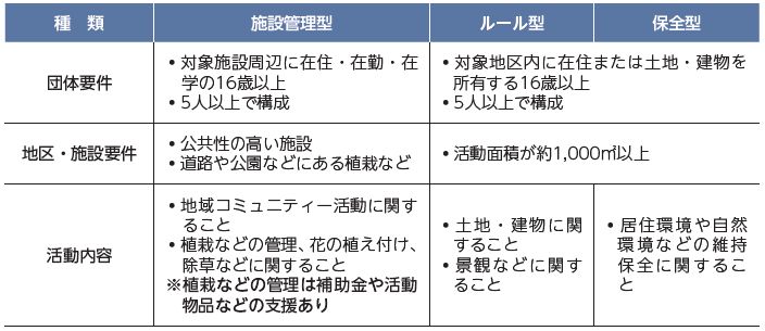 活動の種類は3つの型があり、それぞれに要件が異なります(上表)。詳細は、市ホームページをご覧ください。