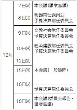 12月2日(火)・18日(木)は9時30分に、その他は9時に開議予定です。
