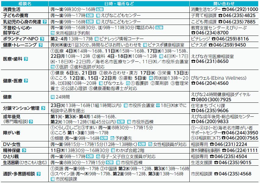 申し込みは希望日の30日前の8時30分から、LINE「海老名市」または電話で。