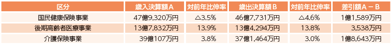 特別会計は、税金を中心とした収入により行政サービスを行う一般会計とは異なり、国民健康保険のようにそれぞれの保険料などで運営する行政サービスをいいます。下水道事業については、公営企業会計を採用し事業を展開しています。特別会計と公営企業会計の会計別決算は次のとおりです。