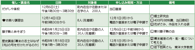 申込:12月1日(月)午前9時から町民センター、町観光協会、ローソンチケットほかで購入