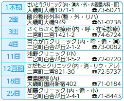※眼科・耳鼻咽喉科は消防署へお問い合わせください。
