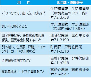 ■役場への問い合わせは担当課への直通番号をご利用ください