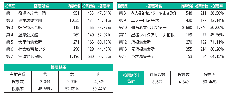 箱根町議会議員選挙は、9月21日投票、即日開票されました。