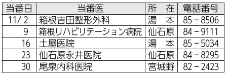 ※11/3(月)・24(月)は小田原市休日夜間急患診療所(小田原市酒匂2-32-16)を利用してください。