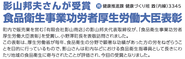 山口さんは、多年にわたり町スポーツ推進委員としてスポーツの普及活動に努めるとともに、町スポーツ推進委員連絡協議会の会長として組織運営を円滑に推進するなど、地域スポーツの振興に優れた功績をあげたことが評価され、今回の受賞となりました。