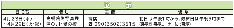 日時:4月16日(水)~5月11日(日)午前9時~午後4時50分