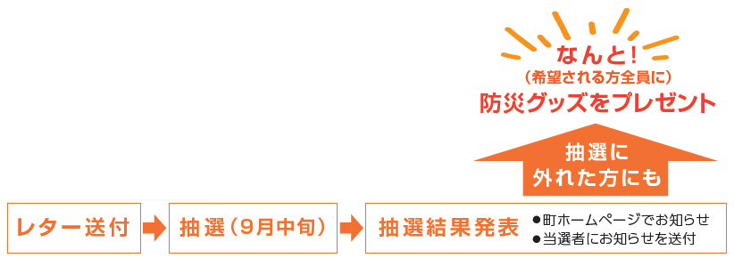 なお、抽選に外れた方にも、希望される方にはレターと引き換えに「防災グッズ」をプレゼントします。