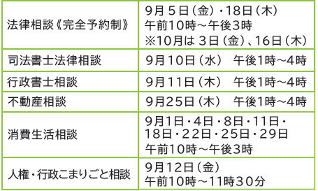 ・法律相談以外は予約優先です(予約がない場合は、当日の受け付けもできます)。