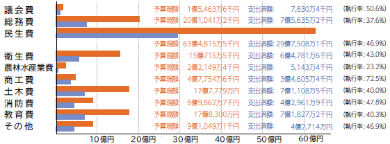 ◆一般会計の支出(歳出)の状況(支出済額71億4,115万7千円(執行率44.4%))