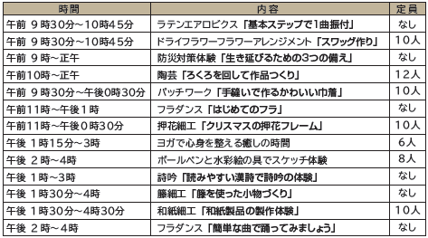 申し込み:体験教室は事前申し込みが必要です(定員があるものは先着順)。