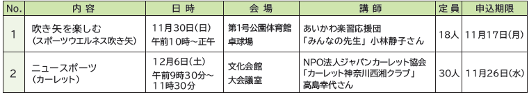 申し込み・問い合わせ:11月21日(金)までに電話またはメールで生涯学習課へ