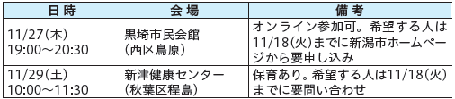 ※事前申し込み不要、当日直接会場へ。出席する議員など詳しくは新潟市ホームページに掲載