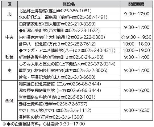 くらし 11/3(祝)は文化の日 文化施設の観覧無料 25/29 前の記事 次の記事 発行日 : 2025年10月19日 自治体名 : 新潟県新潟市 広報紙名 : 市報にいがた 令和7年10月19日号 11月3日(祝)は、市内の文化施設(下表)を無料で観覧できます。この機会に文化施設を巡ってみませんか。 問い合わせ:文化政策課 (【電話】025-226-2563) Tweet シェアする [申し込み不要]おでかけナビ(2) 情報ひろば~事業者向け