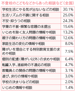 小・中学生の不登校者数は年々増加しています。学校に行けなくなる理由はさまざまです。今号は、こどもが自分らしく生活できるようになるための取り組みを紹介します。