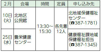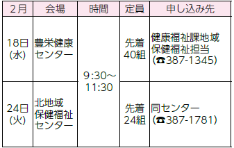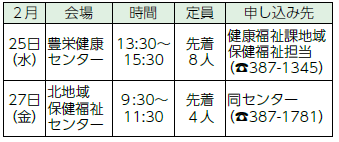 問合せ:健康福祉課健康増進係(【電話】387-1340)