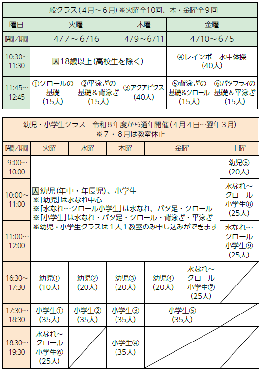 ※同じ曜日・時間帯の教室は重複して申し込みできません