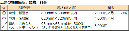 ※料金には広告作製料、ポケットティッシュ購入料を含んでいません