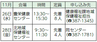 問合せ:健康福祉課健康増進係(【電話】387-1340)