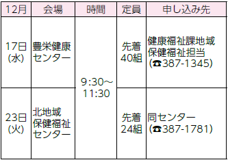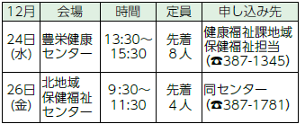 問合せ:健康福祉課健康増進係(【電話】387-1340)