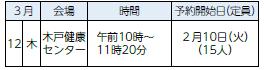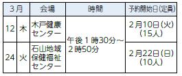 申し込み:10日(火)は健康福祉課地域保健福祉担当(【電話】025-250-2370)、17日(火)は石山地域保健福祉センター(【電話】025-250-2901)
