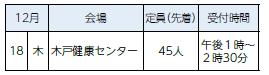 申し込み:11月19日(水)から電話で健康福祉課健康増進係(【電話】025-250-2340)