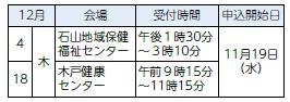 申し込み:4日(木)は石山地域保健福祉センター(【電話】025-250-2901)、18日(木)は健康福祉課地域保健福祉担当(【電話】025-250-2370)