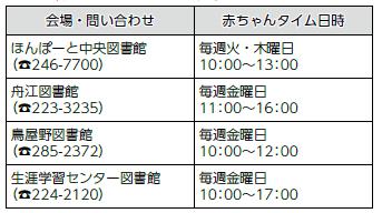 内容:絵本の読み聞かせ、わらべうた、紙芝居、職員による「絵本なんでも相談タイム」など