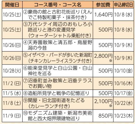 人気のランチ付きコースなど、まだ申し込みを受け付けています。参加したことがない人も、何度も参加している人も、新潟シティガイドの解説を聞きながら、秋の中央区を歩きませんか。