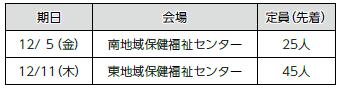 申し込み:各実施日の30日前から2日前までに本紙の二次元コードを読み取り申し込み
