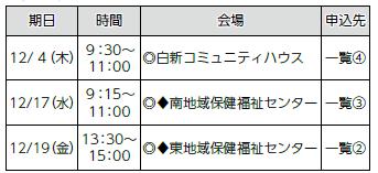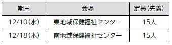 申し込み:各実施日の2日前までに電話で各申し込み先へ