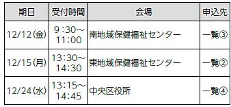 申し込み:11月19日(水)から電話で各申し込み先へ