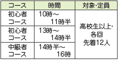 申し込み:参加希望日の前月第2土曜12時~2日前12時に同センター