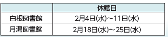 くらし 図書館 蔵書点検のお知らせ 4/22 前の記事 次の記事 発行日 : 2026年01月18日 自治体名 : 新潟県新潟市南区 広報紙名 : 南区役所だより「みなみ風」 令和8年1月18日号 白根・月潟図書館は下記の期間、蔵書点検のため休館いたします。 休館日をお忘れなく! 問い合わせ:白根図書館 【電話】372-5510 Tweet シェアする 2月の健康カレンダー 文化財防火デーに伴う消防訓練を実施します